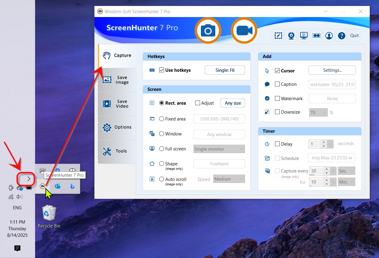 ScreenHunter is designed so that it is always on standby, ready for you to take action.