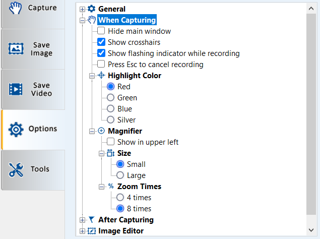 Options - When Capturing Group